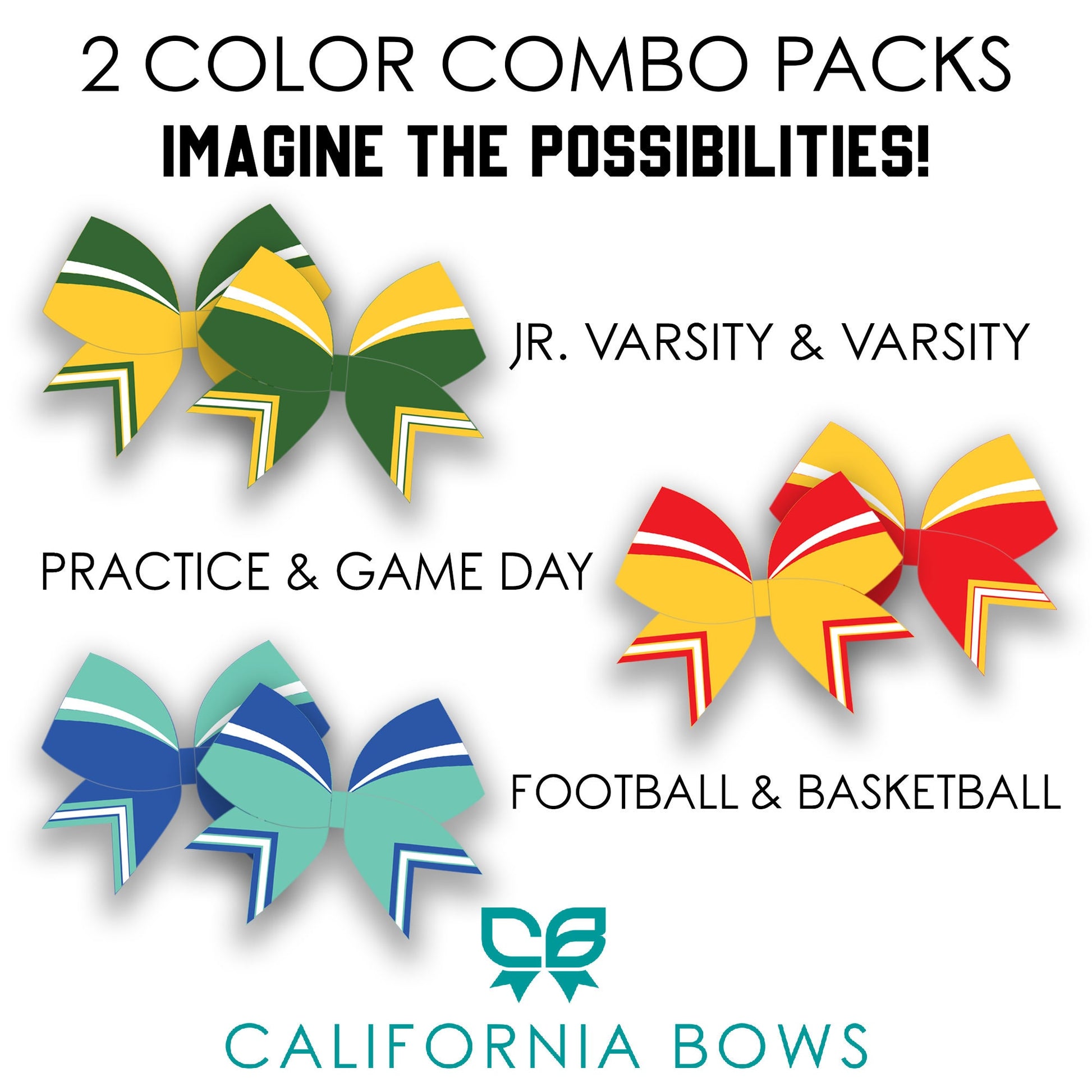 California Bows Colors: Sunshine, Emerald and White
