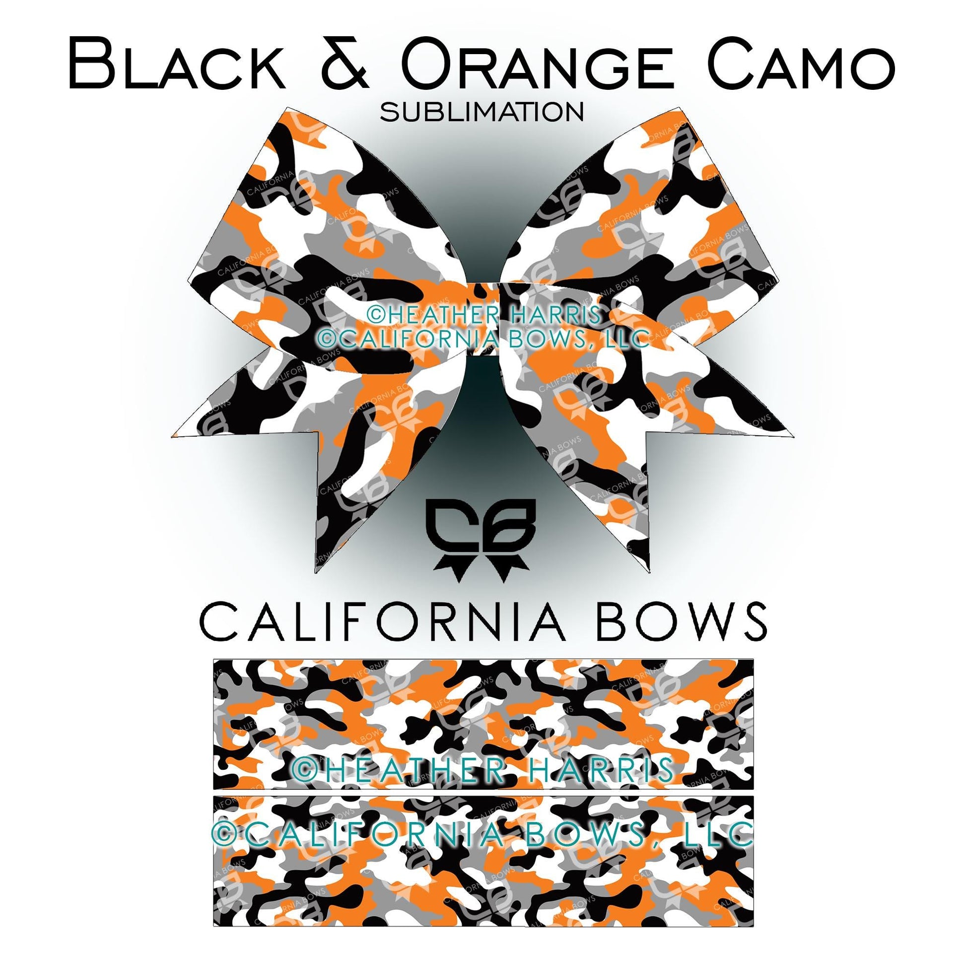 Orange Black Camo Cheer Bow Design Sublimation Download PNG